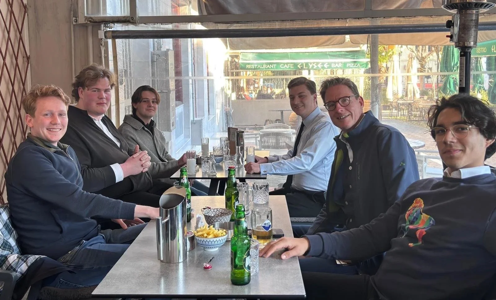 V.l.n.r. deelnemers Wouter de Ruiter, Vice-Praeses Ties van Assen, Bestuurslid Promotie en Ledenwerving Zè Wassink, Praeses Klaas Gerard Jumelet, Paul van Hattem en Mathieu Tjin. Foto door S.V. Ad Interim.