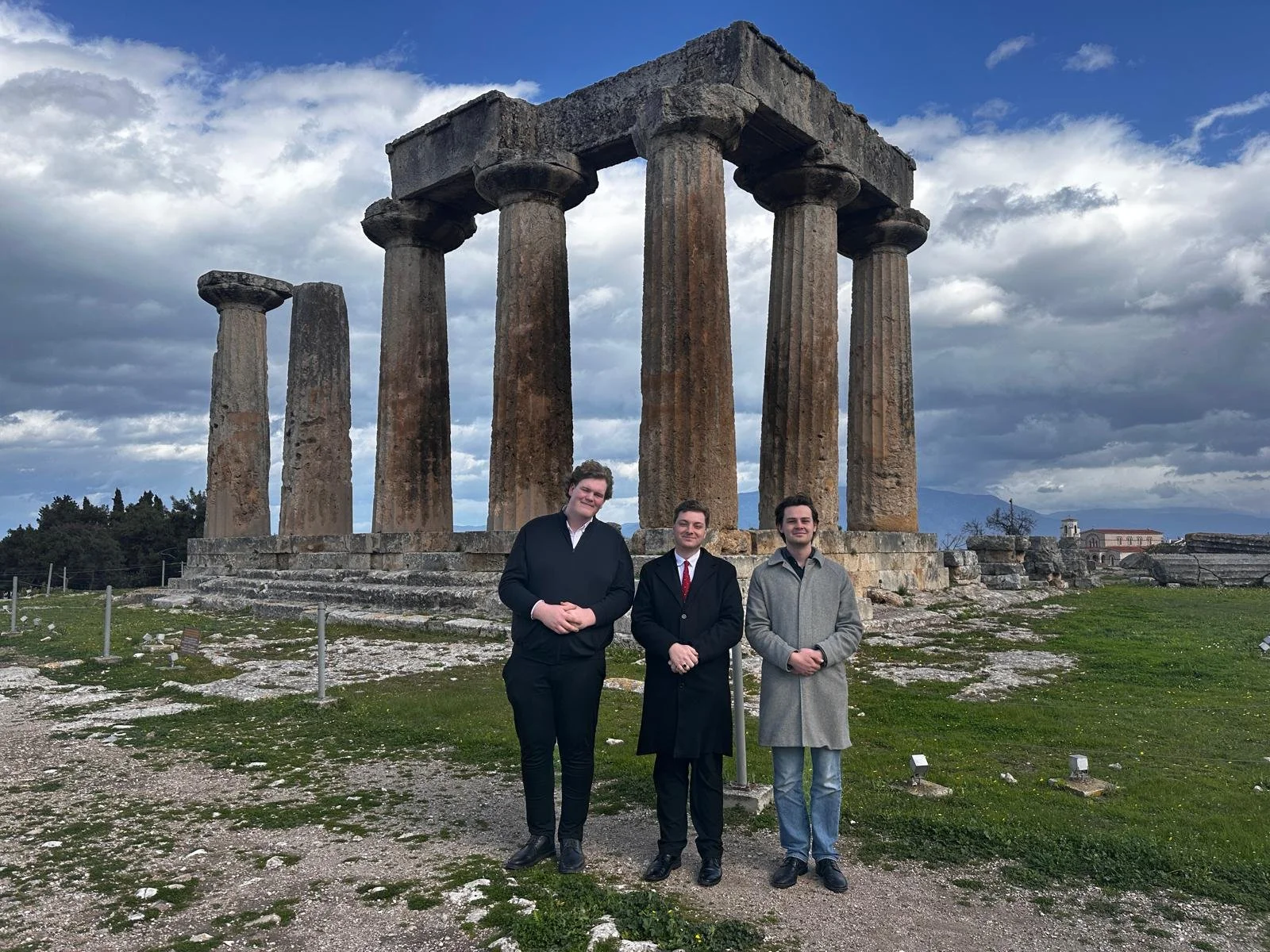 De drie aanwezige bestuursleden, reisleider en Praeses K.G. (Klaas Gerard) Jumelet, Vice-Praeses T.O.G. (Ties) van Assen en Bestuurslid Promotie & Ledenwerving Z.G. (Zè) Wassink blikken terug op een zeer geslaagde studiereis. De reis naar Griekenland was de eerste studiereis sinds vóór de coronapandemie, waardoor veel organisatorische kwesties volledig uit het niets moesten worden bedacht en afgehandeld, in plaats van dat men kon bouwen op de fundamenten van vorige reiscommissies.